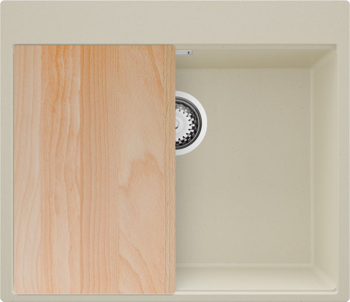 PRIMAGRAN Spülbecken Beige 58x50cm, Granitspüle 1 Becken + Ablauf-Set + Schneidebrett, Küchenspüle ab 60er Unterschrank - Oslo