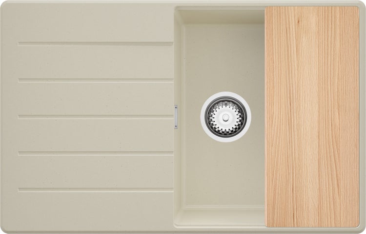 PRIMAGRAN Spülbecken Beige 78x50cm, Granitspüle 1 Becken + Ablauf-Set + Schneidebrett, Küchenspüle ab 50er Unterschrank - Kopenhagen