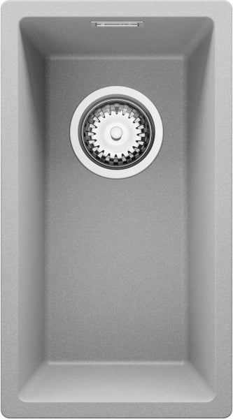 PRIMAGRAN Spülbecken Grau 26x47cm, Granitspüle 1 Becken + Ablauf-Set, Küchenspüle ab 30er Unterschrank - London Slim
