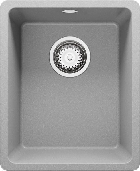 PRIMAGRAN Spülbecken Grau 36x44cm, Granitspüle 1 Becken + Ablauf-Set, Küchenspüle ab 40er Unterschrank - Venedig Slim Easy