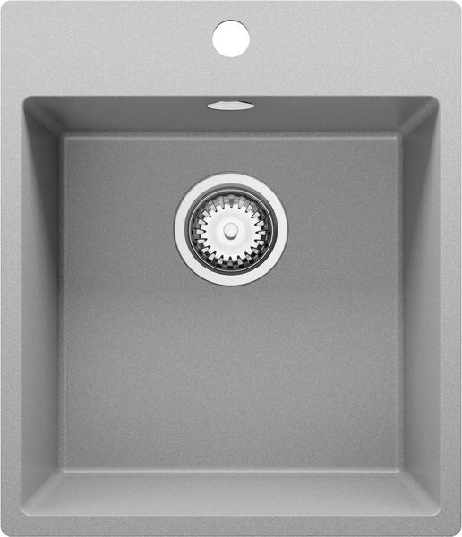 PRIMAGRAN Spülbecken Grau 43x50cm, Granitspüle 1 Becken + Ablauf-Set, Küchenspüle ab 45er Unterschrank - Riga