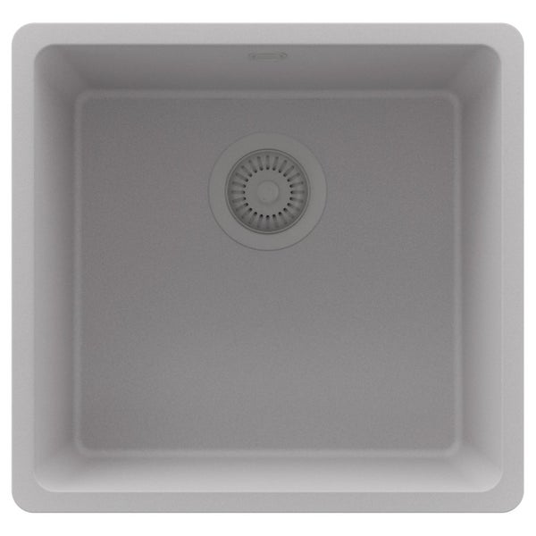 PRIMAGRAN Spülbecken Grau 46x44cm, Granitspüle 1 Becken + Ablauf-Set, Küchenspüle ab 50er Unterschrank - Venedig Slim Easy
