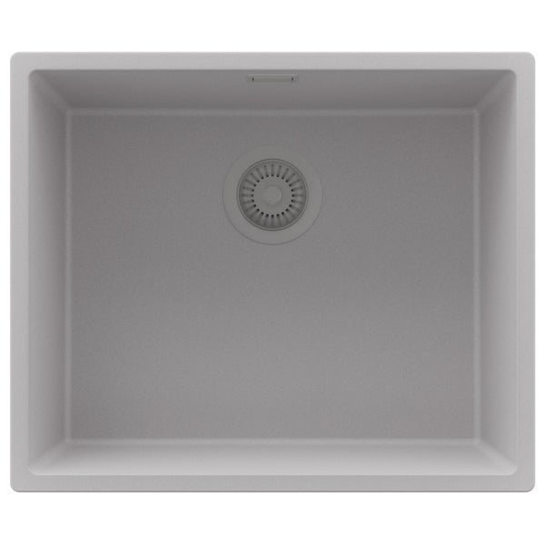 PRIMAGRAN Spülbecken Grau 56x47cm, Granitspüle 1 Becken + Ablauf-Set, Küchenspüle ab 60er Unterschrank - London Slim