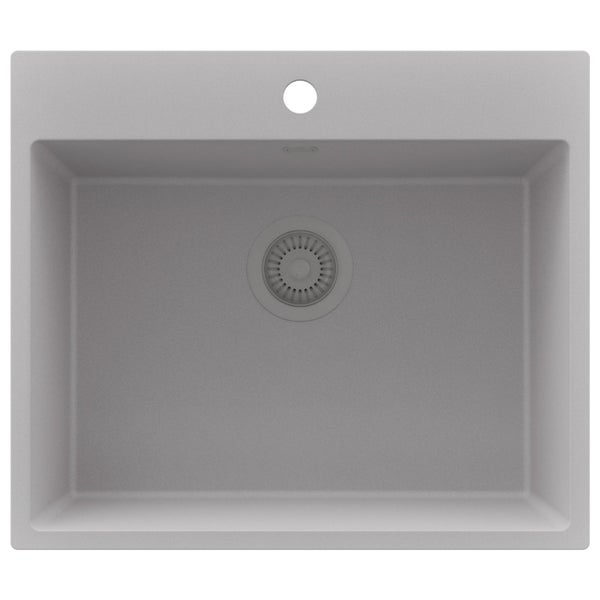 PRIMAGRAN Spülbecken Grau 58x50cm, Granitspüle 1 Becken + Ablauf-Set, Küchenspüle ab 60er Unterschrank - Riga