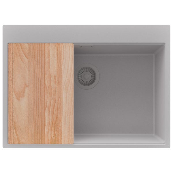 PRIMAGRAN Spülbecken Grau 68x50cm, Granitspüle 1 Becken + Ablauf-Set + Schneidebrett, Küchenspüle ab 70er Unterschrank - Oslo