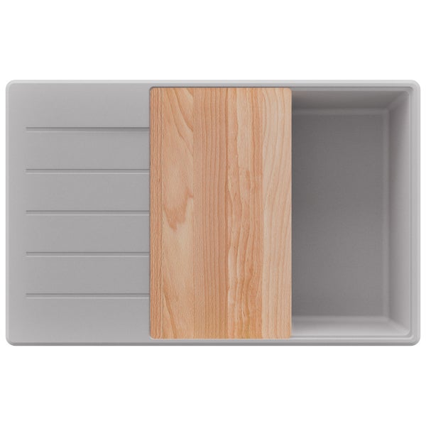 - Im Lieferumfang enthaltenAblauf und Überlaufgarnitur, Einbauspülbecken, Schneidebrett-Einsatz aus Holz, Küchenarmatur