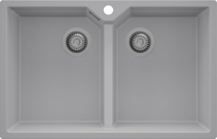 PRIMAGRAN Spülbecken Grau 78x50cm, Granitspüle 2 Becken + Ablauf-Set, Küchenspüle ab 80er Unterschrank - Madrid Twin
