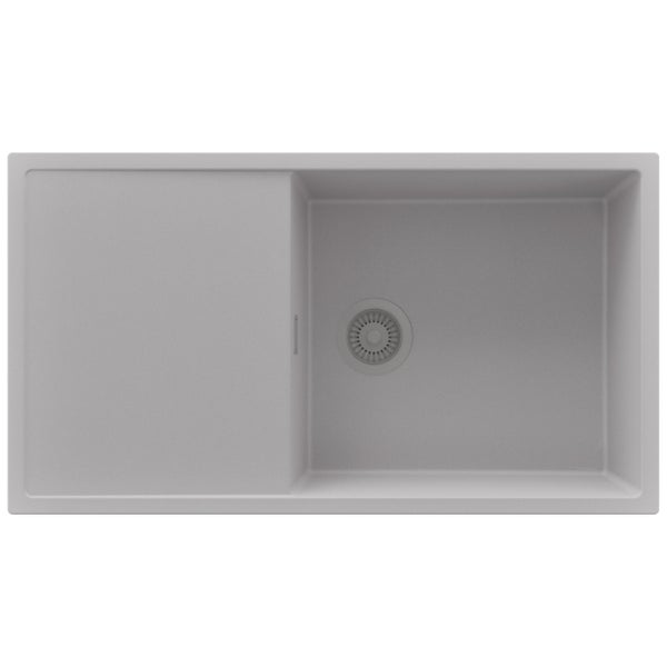 PRIMAGRAN Spülbecken Grau 90x50cm, Granitspüle 1 Becken + Ablauf-Set, Küchenspüle ab 60er Unterschrank - Ibiza