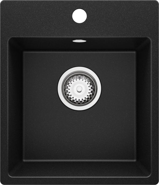 PRIMAGRAN Spülbecken Schwarz 38x44cm, Granitspüle 1 Becken + Ablauf-Set, Küchenspüle ab 40er Unterschrank - Riga Easy