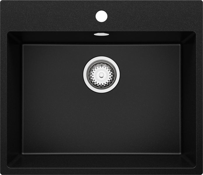 PRIMAGRAN Spülbecken Schwarz 58x50cm, Granitspüle 1 Becken + Ablauf-Set, Küchenspüle ab 60er Unterschrank - Riga