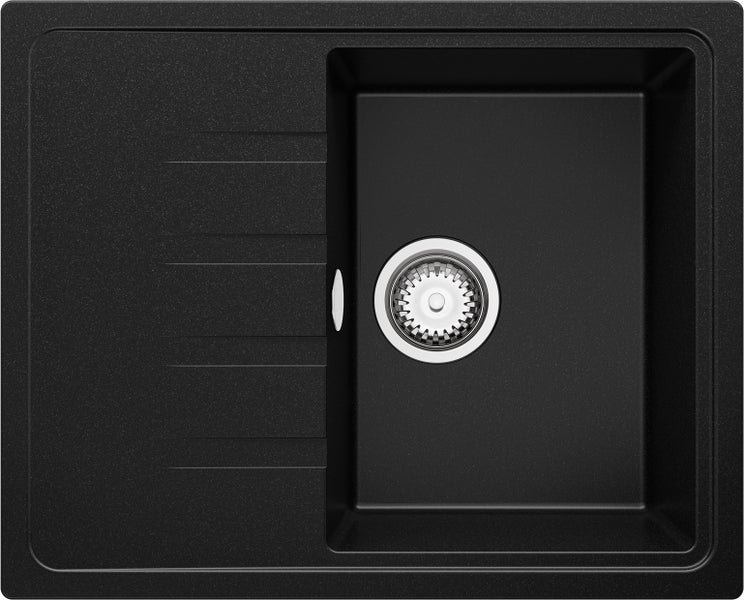 PRIMAGRAN Spülbecken Schwarz 62x50cm, Granitspüle 1 Becken + Ablauf-Set, Küchenspüle ab 40er Unterschrank - Mailand