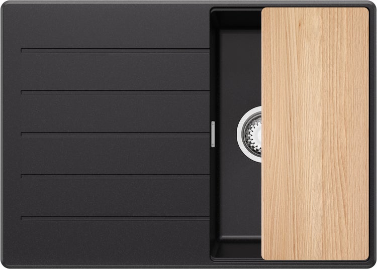 Copenhaga 700-40 Top, komplettes Abflusssystem (hochwertiger Siphon, Überlauf, zusätzlicher Abfluss für den Anschluss an Waschmaschine oder Geschirrspüler) und Schneidebrett.