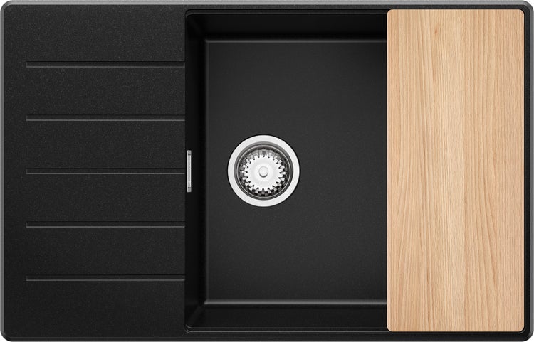 PRIMAGRAN Spülbecken Schwarz 78x50cm, Granitspüle 1 Becken + Ablauf-Set + Schneidebrett, Küchenspüle ab 60er Unterschrank - Kopenhagen