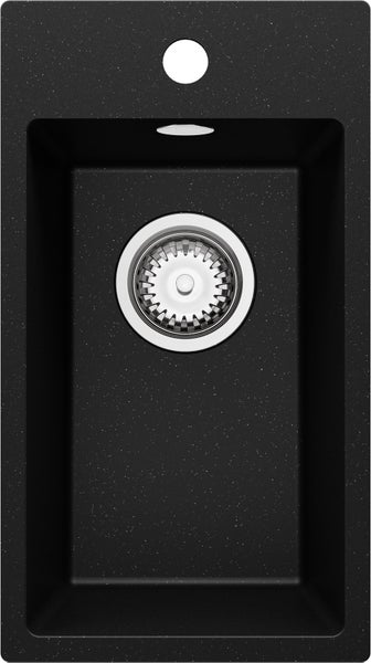 PRIMAGRAN Spülbecken Schwarz Metallic 28x50cm, Granitspüle 1 Becken + Ablauf-Set, Küchenspüle ab 30er Unterschrank - Riga