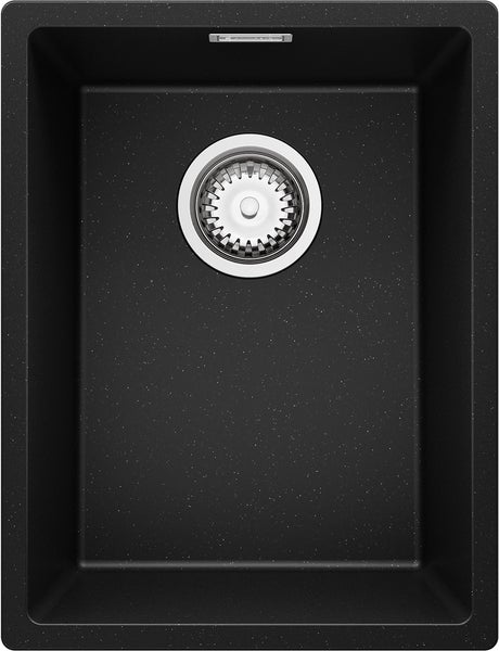 PRIMAGRAN Spülbecken Schwarz Metallic 36x47cm, Granitspüle 1 Becken + Ablauf-Set, Küchenspüle ab 40er Unterschrank - London Slim