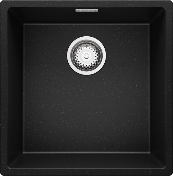 PRIMAGRAN Spülbecken Schwarz Metallic 46x47cm, Granitspüle 1 Becken + Ablauf-Set, Küchenspüle ab 50er Unterschrank - London Slim