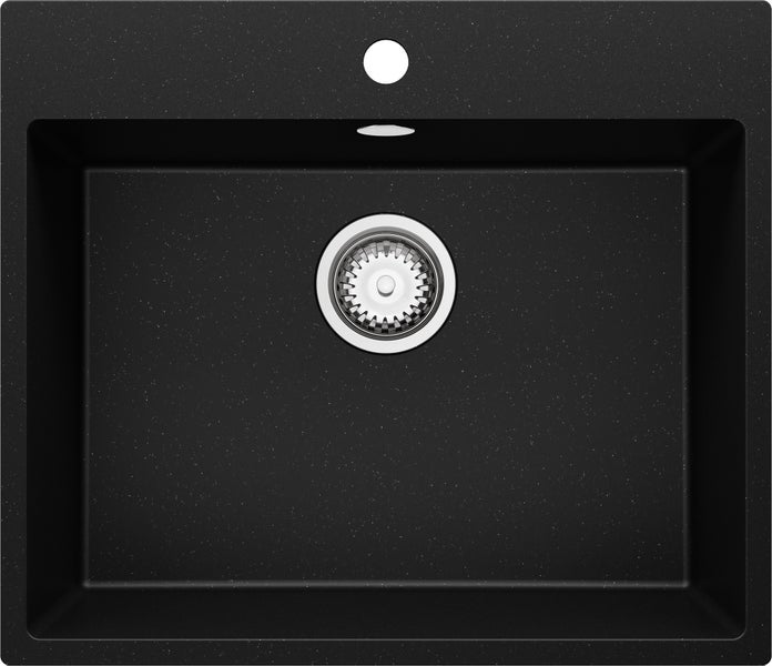 PRIMAGRAN Spülbecken Schwarz Metallic 58x50cm, Granitspüle 1 Becken + Ablauf-Set, Küchenspüle ab 60er Unterschrank - Riga