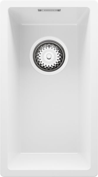 PRIMAGRAN Spülbecken Weiß 26x47cm, Granitspüle 1 Becken + Ablauf-Set, Küchenspüle ab 30er Unterschrank - London Slim
