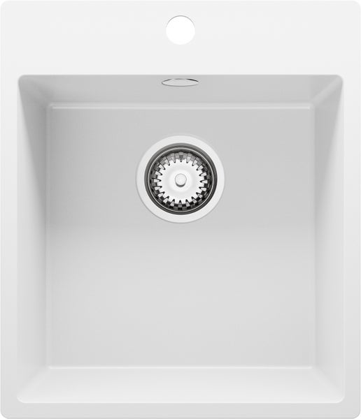 PRIMAGRAN Spülbecken Weiß 43x50cm, Granitspüle 1 Becken + Ablauf-Set, Küchenspüle ab 45er Unterschrank - Riga