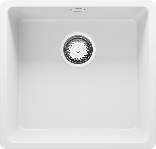 PRIMAGRAN Spülbecken Weiß 46x44cm, Granitspüle 1 Becken + Ablauf-Set, Küchenspüle ab 50er Unterschrank - Venedig Slim Easy