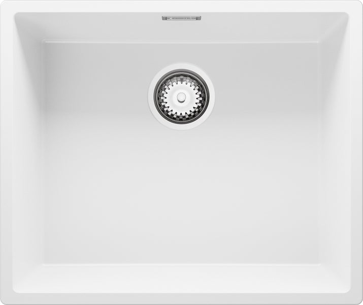 PRIMAGRAN Spülbecken Weiß 56x47cm, Granitspüle 1 Becken + Ablauf-Set, Küchenspüle ab 60er Unterschrank - London Slim