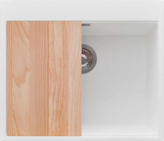 Oslo 60 Top, komplettes Abflusssystem (hochwertiger Siphon, Überlauf, zusätzlicher Abfluss für den Anschluss an Waschmaschine oder Geschirrspüler) und Schneidebrett.