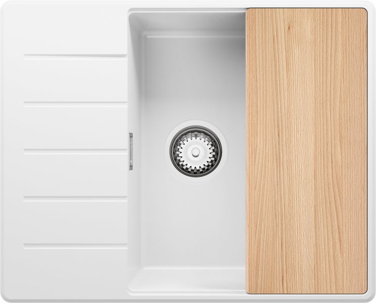 PRIMAGRAN Spülbecken Weiß 62x50cm, Granitspüle 1 Becken + Ablauf-Set + Schneidebrett, Küchenspüle ab 50er Unterschrank - Kopenhagen