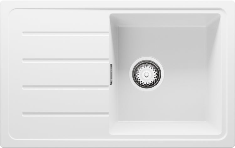 PRIMAGRAN Spülbecken Weiß 70x44cm, Granitspüle 1 Becken + Ablauf-Set, Küchenspüle ab 45er Unterschrank - Kopenhagen Easy