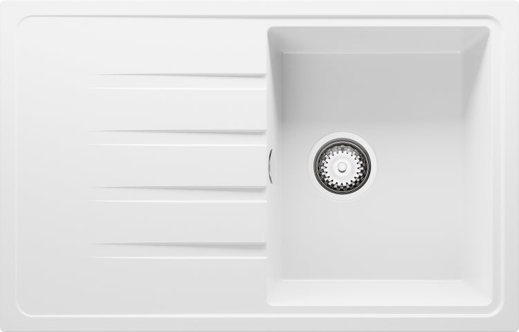 Möchten Sie auf Funktionalität, Charakter und Komfort setzen? Wählen Sie das Modell des Granit-Spülbeckens aus der Serie Mailand. Das tiefe Becken und die profilierte Abtropffläche erleichtern das Spülen, und die Rillen leiten das Wasser schnell ab, sodass Ihr Geschirr trocken bleibt. Das Modell Mailand 780-45 ist für Unterschränke mit einer Breite von ab 45 cm geeignet.
