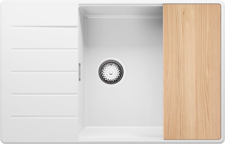 PRIMAGRAN Spülbecken Weiß 78x50cm, Granitspüle 1 Becken + Ablauf-Set + Schneidebrett, Küchenspüle ab 60er Unterschrank - Kopenhagen