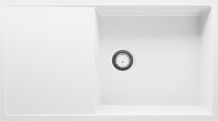 PRIMAGRAN Spülbecken Weiß 90x50cm, Granitspüle 1 Becken + Ablauf-Set, Küchenspüle ab 60er Unterschrank - Ibiza