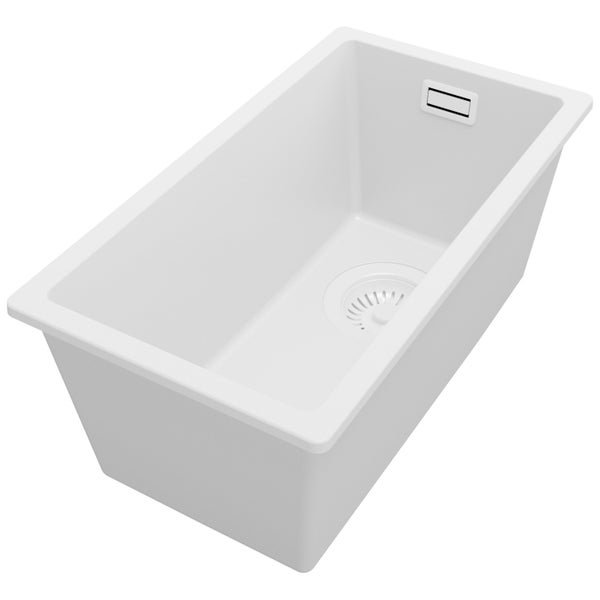 PRIMAGRAN Unterbauspüle Granit Alles Weiß 26x47cm, Spülbecken 1 Becken + Ablauf-Set, Granitspüle ab 30er Unterschrank - London