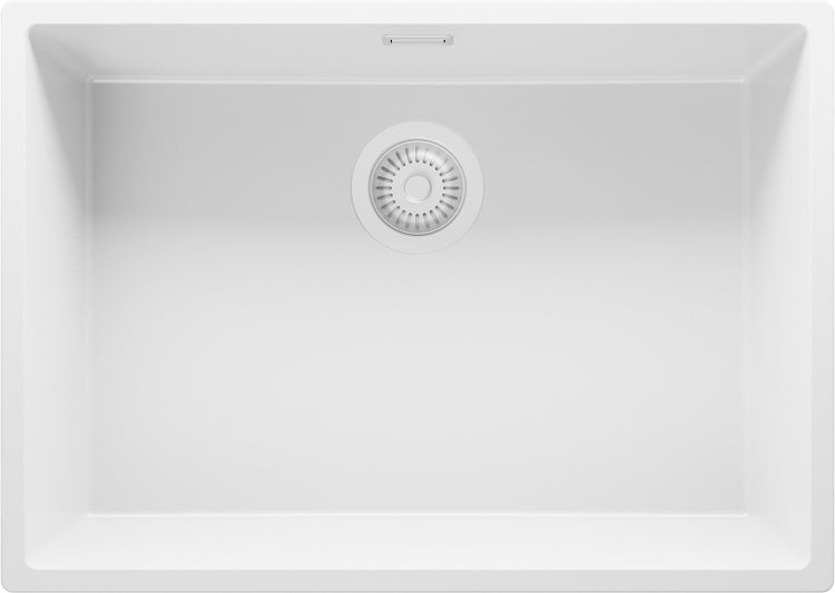 PRIMAGRAN Unterbauspüle Granit Alles Weiß 66x47cm, Spülbecken 1 Becken + Ablauf-Set, Granitspüle ab 70er Unterschrank - London