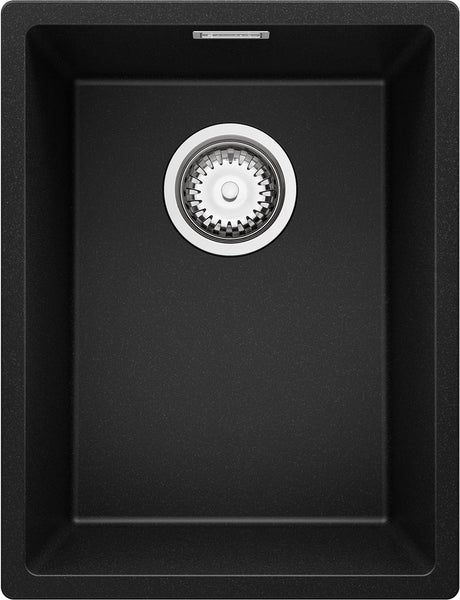 PRIMAGRAN Unterbauspüle Granit Schwarz 36x47cm, Spülbecken 1 Becken + Ablauf-Set, Granitspüle ab 40er Unterschrank - London