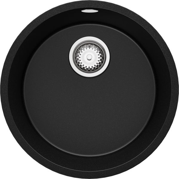 PRIMAGRAN Unterbauspüle Granit Schwarz 46x46cm, Spülbecken 1 Becken + Ablauf-Set, Granitspüle ab 50er Unterschrank - Valletta