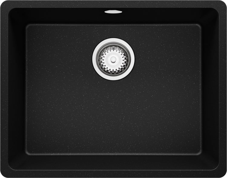 PRIMAGRAN Unterbauspüle Granit Schwarz Metallic 56x44cm, Spülbecken 1 Becken + Ablauf-Set, Granitspüle ab 60er Unterschrank - Venedig Easy