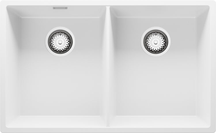 PRIMAGRAN Unterbauspüle Granit Weiß 76x47cm, Spülbecken 2 Becken + Ablauf-Set, Granitspüle ab 80er Unterschrank - London Twin
