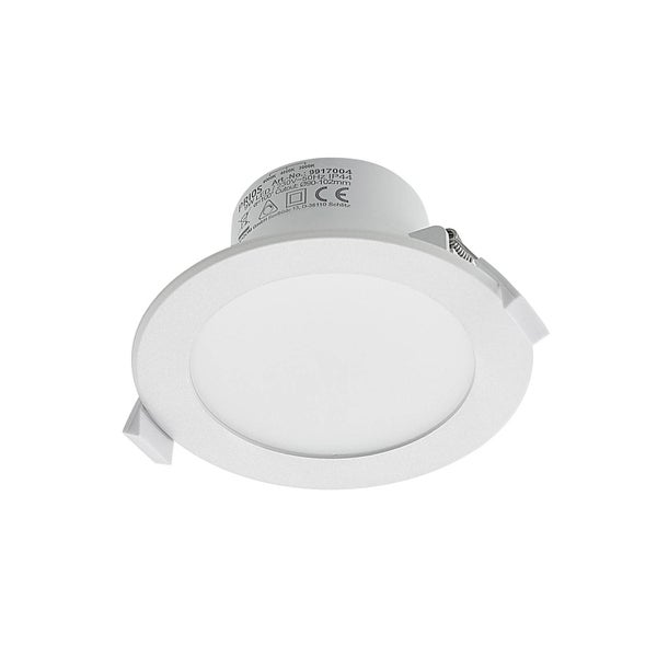 Material: Aluminium Farbe: weiß Durchmesser:11.5 cm Höhe: 5.8 cm Einbautiefe: 8 cm Leuchtmittel: 1 x 9 W LED Anschlussspannung (V): 230 Schutzart: IP44 Schutzklasse: IIinklusive Leuchtmittel