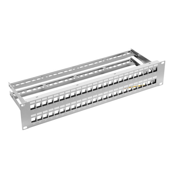 ProfiPatch Patchpanel Patchfeld 19 Zoll 48 Port Verteilerfeld für Keystone Module Rackeinbau 2HE grau