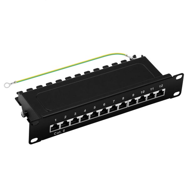 ProfiPatch Patchpanel Patchfeld Cat.6 10 Zoll 12-Port geschirmt RJ45 Rackeinbau 1HE schwarz