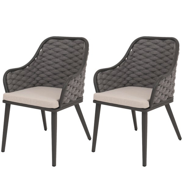 PROREGAL 2er-Set Aluminium-Gartenstuhl, HxBxT 84x59x63 cm, Sitzhöhe 46cm, Olefin (200 g/m²) Seilgeflecht Rope, Anthrazit Kissen Taupe, Outdoor Stuhl