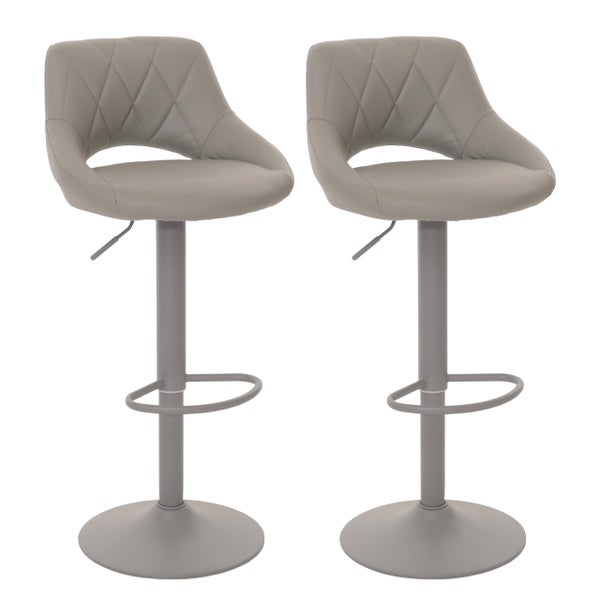 PROREGAL 2er-Set Barhocker gepolstert mit Lehne Sitzhöhe 60-82cm Fußablage drehbar Kunstleder Metall Grau Barstuhl Tresenhocker