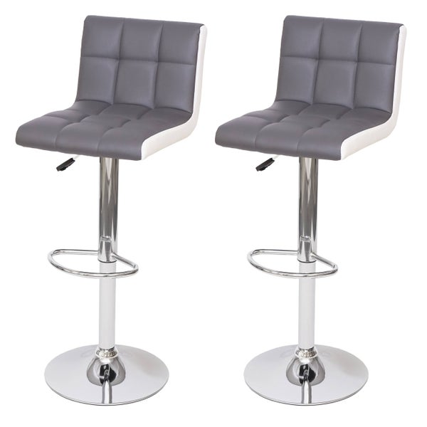 PROREGAL 2er-Set Barhocker gepolstert mit Lehne Sitzhöhe 63-87cm höhenverstellbar Kunstleder Grau-Weiß Chromfuß| Tresenhocker Barstuhl