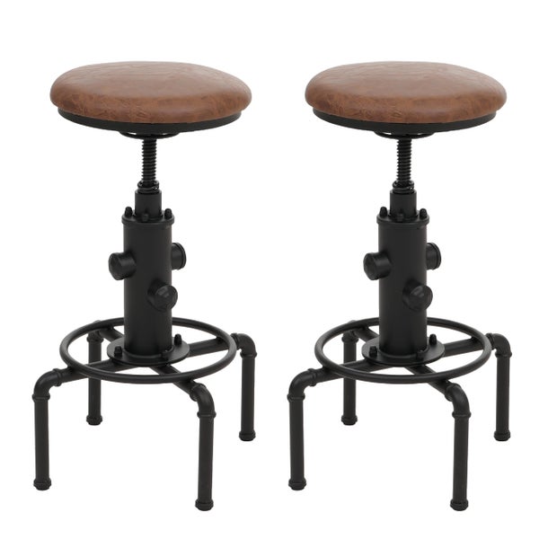 PROREGAL 2er-Set Barhocker gepolstert Sitzhöhe 62-85cm Braun Barstuhl Tresenhocker höhenverstellbar drehbar Industrial Metall Kunstleder
