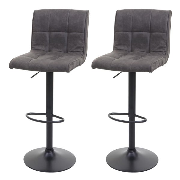 PROREGAL 2er-Set Barhocker gepolstert und höhenverstellbar mit Lehne Sitzhöhe 64-85cm Wildlederimitat| vintage Dunkelgrau Barstuhl Tresenhocker