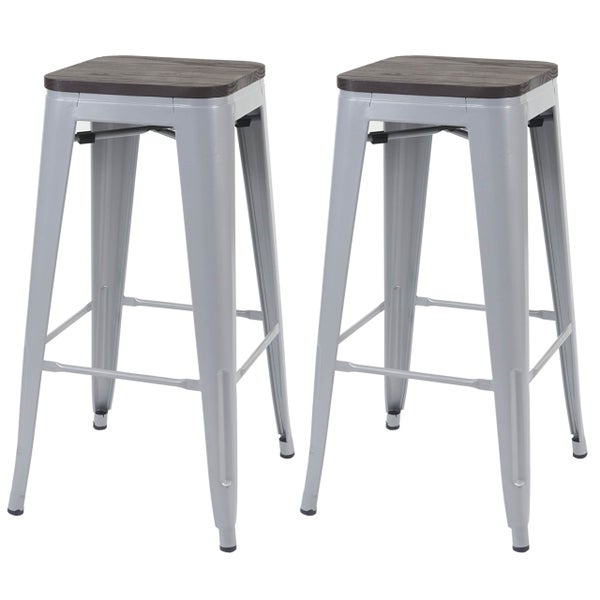 PROREGAL 2er-Set Barhocker inkl. Holz-Sitzfläche Sitzhöhe 76cm Metall Industriedesign stapelbar Grau Barstuhl Tresenhocker