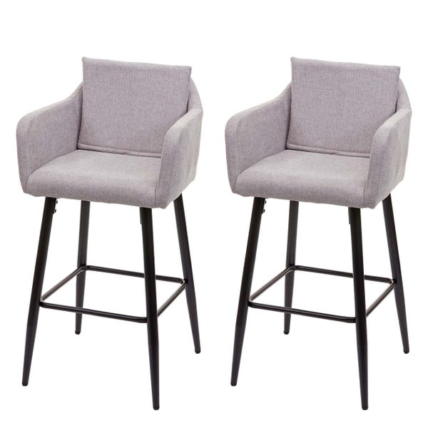 PROREGAL 2er-Set Barhocker mit Lehne Sitzhöhe 74cm Fußablage Metall Stoff/Textil Hellgrau Barstuhl Tresenhocker