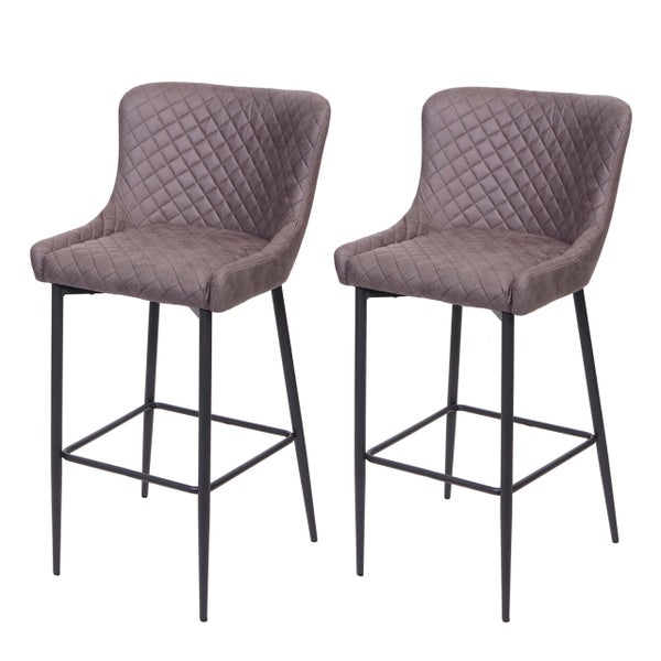 PROREGAL 2er-Set Barhocker mit Lehne Sitzhöhe 75cm Vintage Metall Fußablage Stoff/Textil Dunkelgrau Barstuhl Tresenhocker