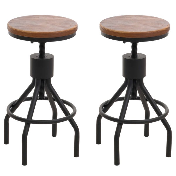 PROREGAL 2er-Set Barhocker Sitzhöhe 59-80cm höhenverstellbar drehbar Fußablage Industrial Metall Massiv-Holz Braun Barstuhl