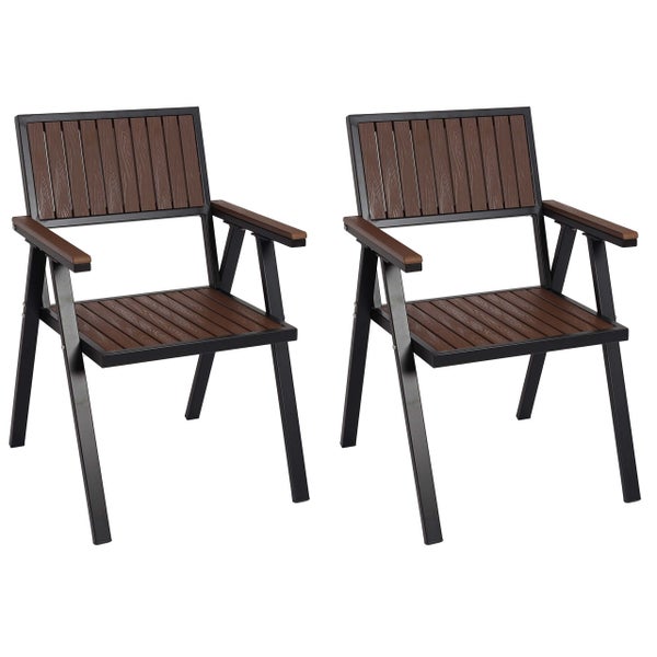 PROREGAL 2er-Set Gartenstuhl, HxBxT 87x57x53 cm, Sitzhöhe 43cm, Outdoor-Beschichtung, Aluminium Holzoptik, Gestell Schwarz, Dunkelbraun, Balkonstuhl Stuhl